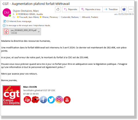 La CGT a interpellé la direction dès la publication de cet arrêté et attend toujours sa mise en application pour le personnel.